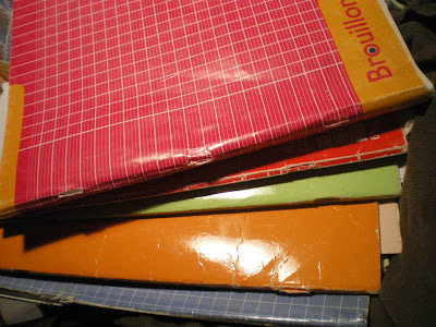 Tuo brouillon-sana kuvaa vihkojani aika hyvin. Se tarkoittaa "kirjallisen työn ensimmäistä astetta" eli puhtaaksikirjoittamatonta tekstiä. Vihkoissani on oikeastaan koko sekatavarakauppani muistissa.